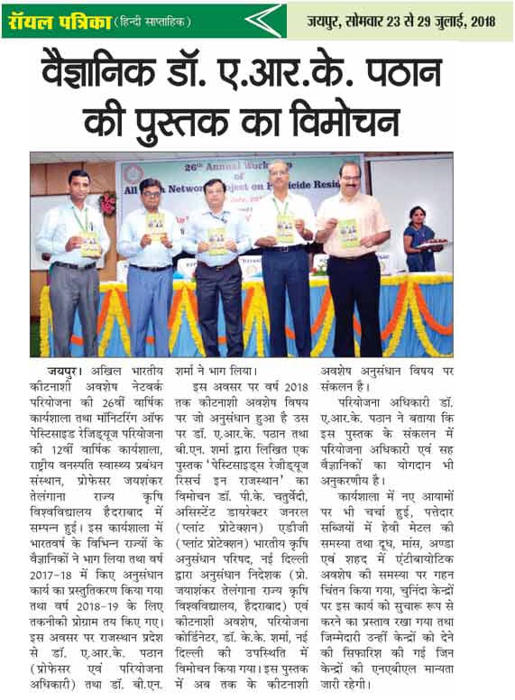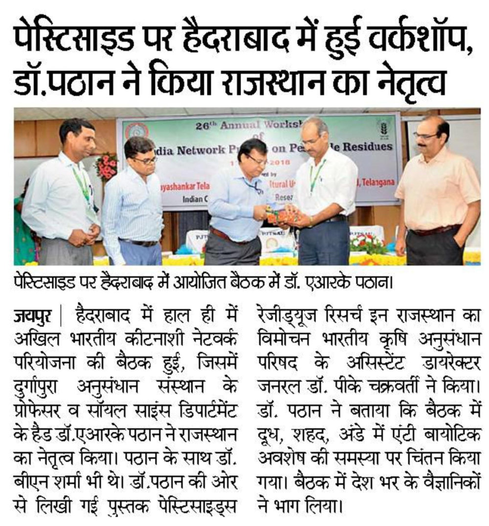 पेस्टिसाइड पर हैदराबाद में हुई वर्कशॉप का डॉ. पठान द्वारा राजस्थान की ओर से नेतृत्व